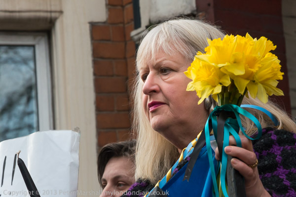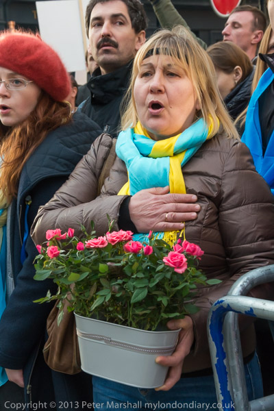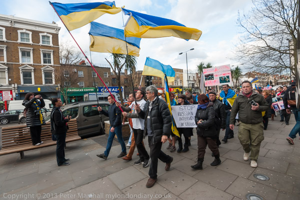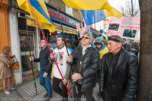 After an hour opposite the Russian consulate (its flag visible in the picture) the Ukrainians formed up to march