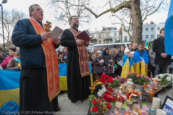 They marched to the Statue of St Volodymyr, the ruler who brought Christianity to the Ukraine in 988