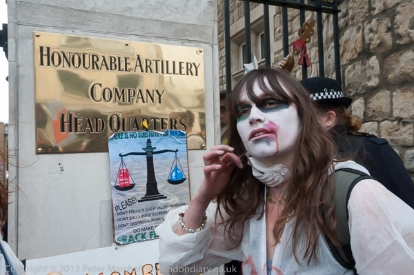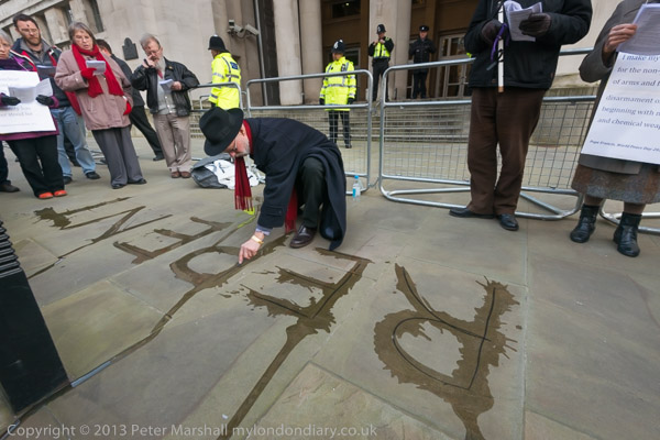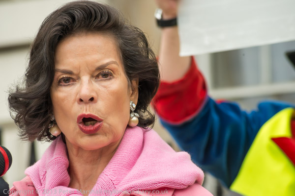And the press were there, largely because Bianca Jagger was there, including some photographers I've never seen at a protest before. And like them I took plenty of pictures of her - and they do rather dominate my coverage of the event here.. I admire Bianca for her support of this and other campaigns but wish the media would show more interest in causes rather than personalities.