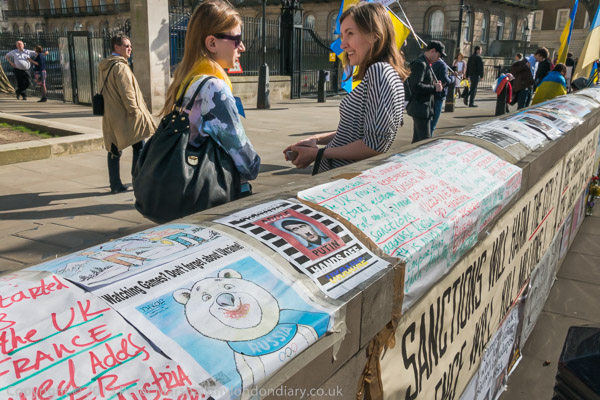 At first the event seemed to be poorly attended, but it took some time for people to find the start, as the closure of Trafalgar Square in preparation for a commercial Russian event the following day made it impossible to meet at the agreed place. Not everyone managed to find the new location - there were some aggrieved posts on Facebook from some who failed.