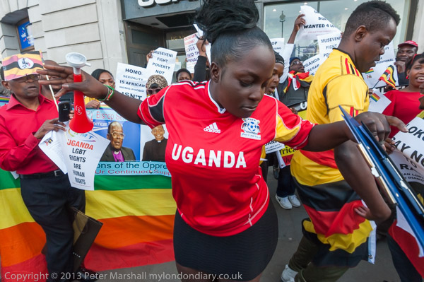 This was the only protest I've ever attended that came with a clapper board, with its title 'Picadilly Trot - Soho Hobo' (sic) and where those taking part had to go back and dance across Piccadilly Circus for another take, and then doing it again without the musicians. I assume they'll manage to spell the name right on the final edit and I hope it gets the protest more publicity, but I don't think its a good way to run a protest and I wasn't amused at having to stay out of shot while taking pictures.
