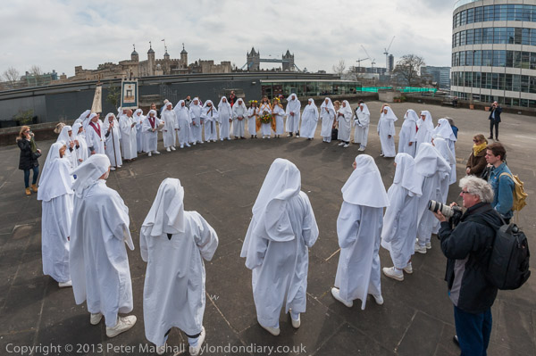 Though most of what I was interested in - the protesters with placards from the English Collective of Prostitutes and Queer Strike - were mainly off camera at the back of a rather odd dancing crown, described in the publicity as "a gathering of musicians, actors, dancers and performance artists." Possibly it included some who are well-known, but there were none I recognised.