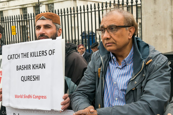 Supporters of the World Sindhi Congress protested at Downing St against the extra-judicial killings of Sindhi human rights activists by the Pakistani security agencies and called on the UK to press the Pakistani government to stop these violations.