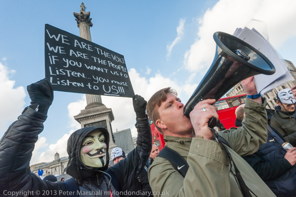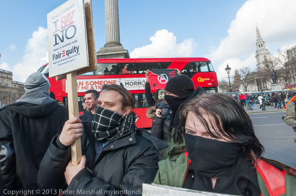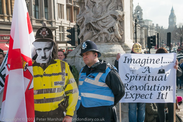 Trafalgar Square & Ecuadorian embassy. Sat 1 Mar 2014