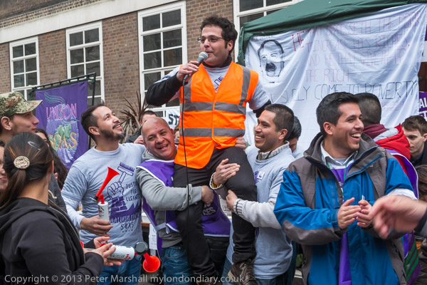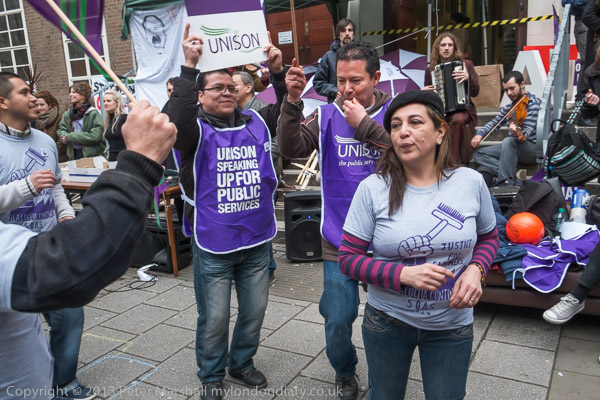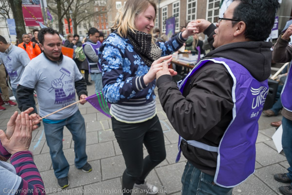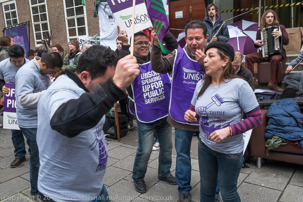 After the speeches, a Colombian band came to play and the cleaners and their supporters started to dance