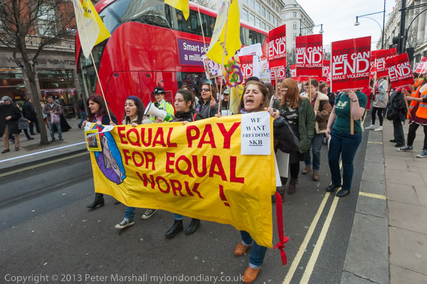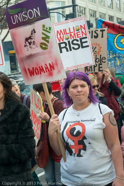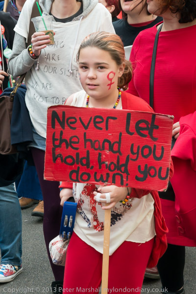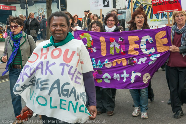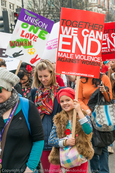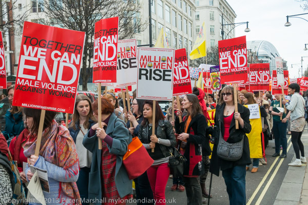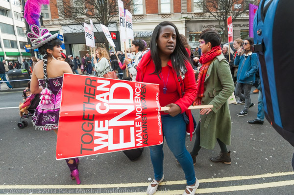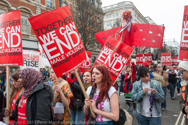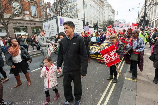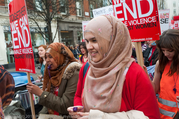 The march moves off with a drummer and Sabrina Qureshi founder and co-ordinator of Million Women Rise