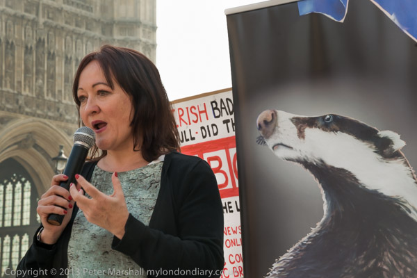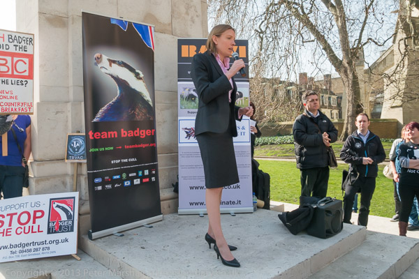 A badger threatens Kerry McCarthy, Labour MP for Bristol East,