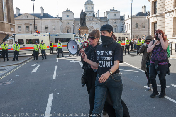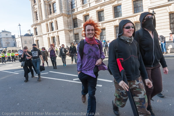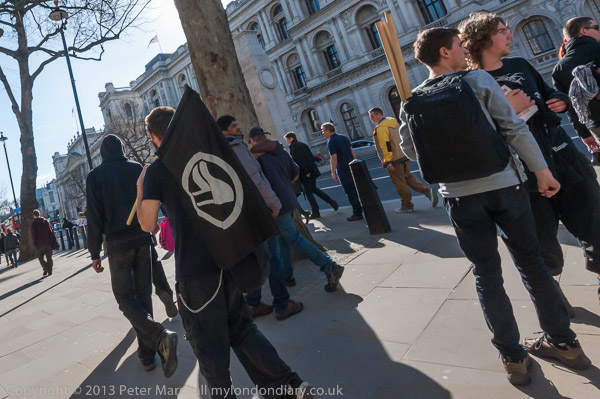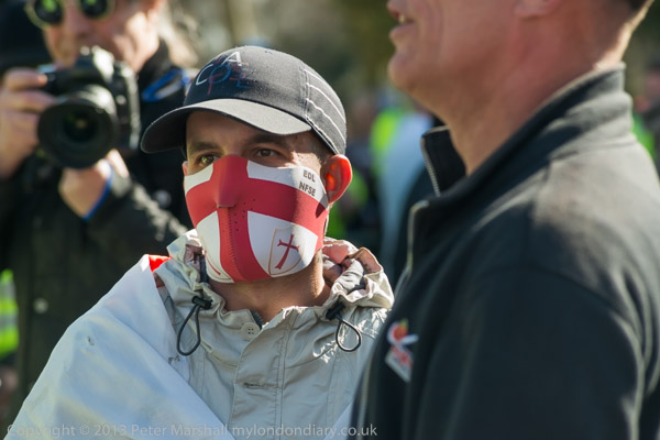 As I left, a small group of antifacists who had evaded the police were walking towards the EVF protest