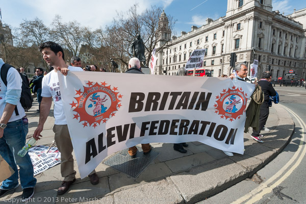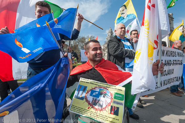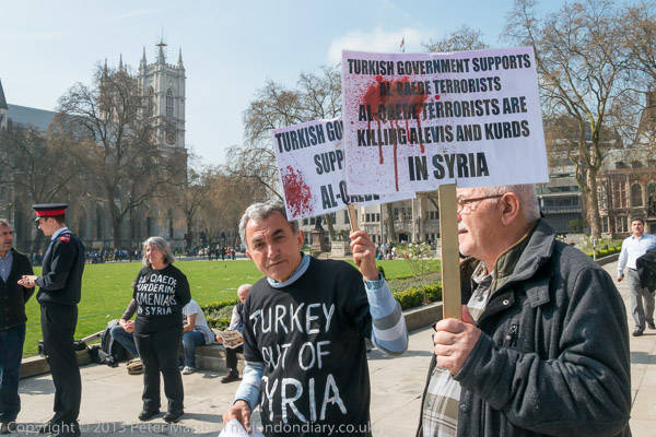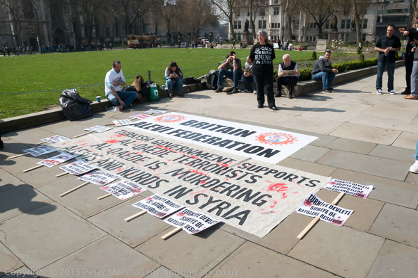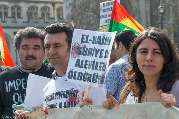 Protesters arrive early for their protest in Tragalgar Square against the killing of Alevis and Kurds in Syria