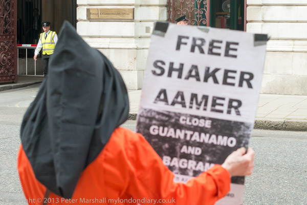 Ray Silk speaking in front of the Foreign Office, calling on William Hague to urgently press the case for release of Shaker Aamer