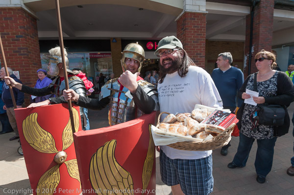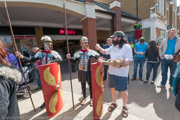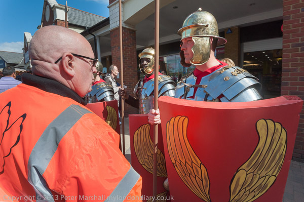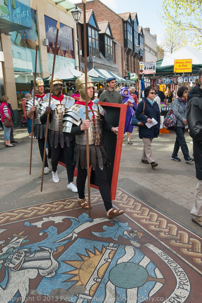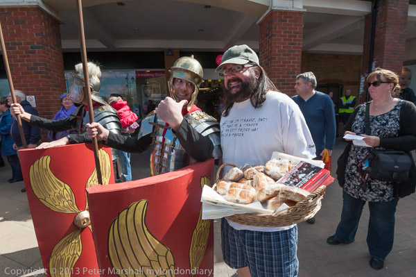 Walking past the mosaic in Staines High St