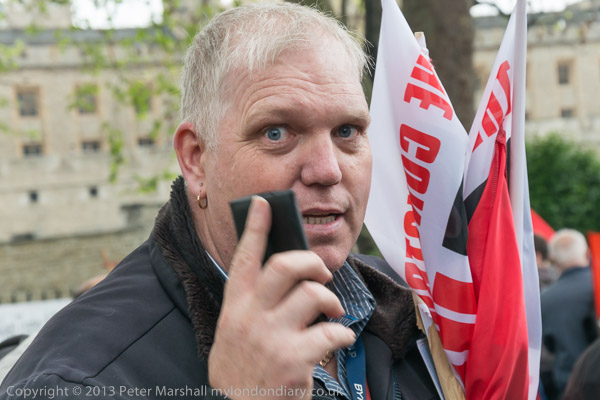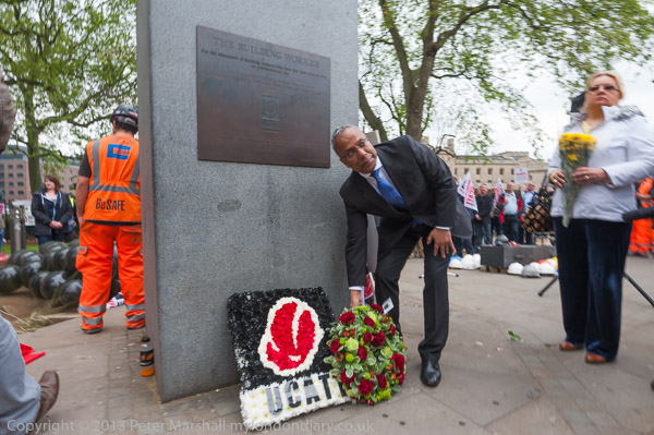 The UCATT wreath is laid at the base of the statue of the Building Worker