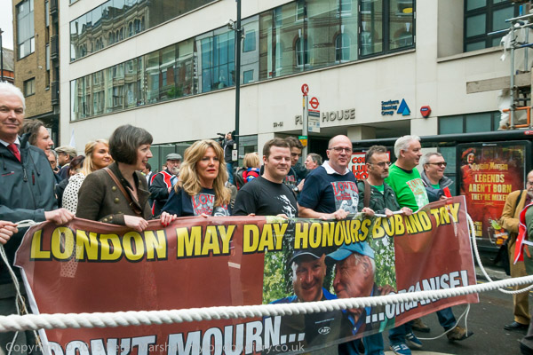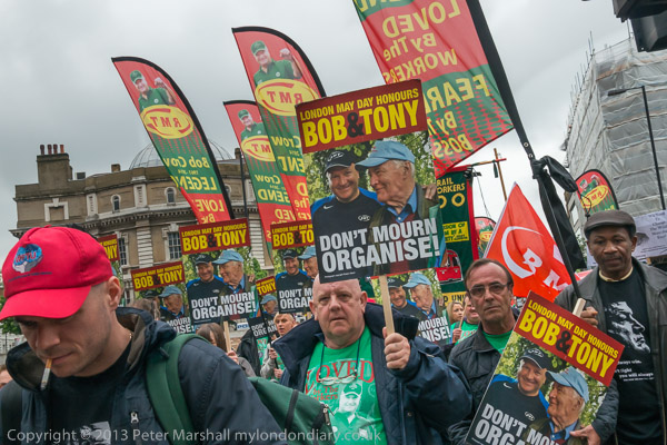 The front of the march with Frances O'Grady and Bob Crow's partner Nicky Hoarau