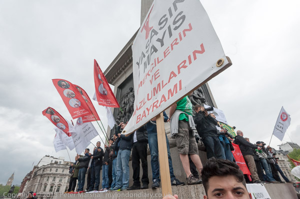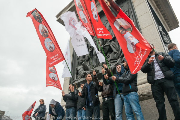 Kaya Mar with one of his pictures and Alevi Federation marchers