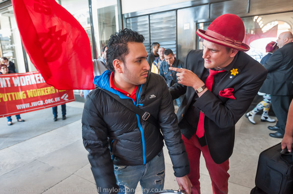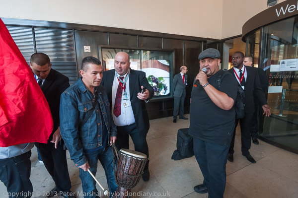 A group of cleaners and supporters from the IWGB arrived close to the Royal Opera House