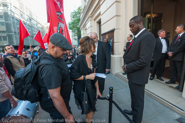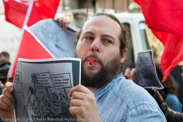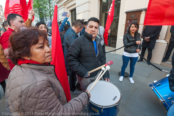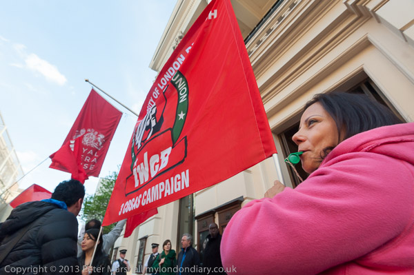 IWGB protesters make a lot of noise outside the Royal Opera House, Covent Garden