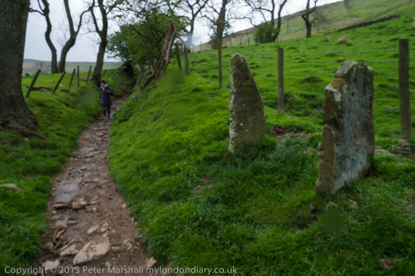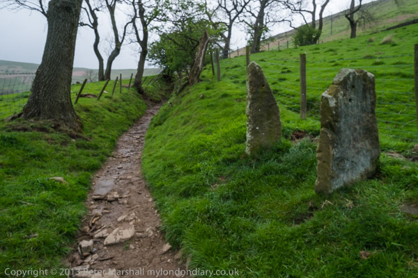 ![]() ![]() A redundant stile in Mam Plantation ![]() View towards Winats pass ![]() Castleton and Hope cement factory ![]() in rapidly changing light ![]() ![]() Coffins used to be carried down the old road from Edale to the church in Castleton for burial from 1300-1634 when Edale got its own church ![]() The road is known as the Corpse Raod this area was known as the Liggate, probably a corruption of Anglo -Saxon ‘lic’, or Old Norse ‘lyk’ meaning ' body' and the Scandanavian 'gate' meaning road or way. Or it could simply be from the Angls-Saxon ‘Hlidgeat’, for a swinging gate, often at the edge of cultivated lands. ![]() Hope cement factory from Hollowford Rd |