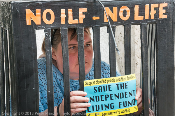 Paula Peters of DPAC in a 'prison cell' - removal of the Independent Living Fund will imprison the disabled in their homes