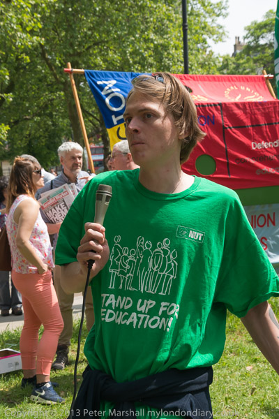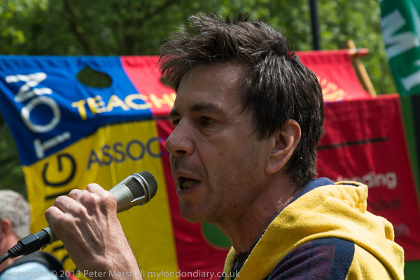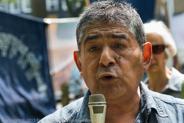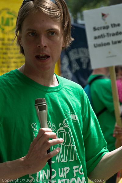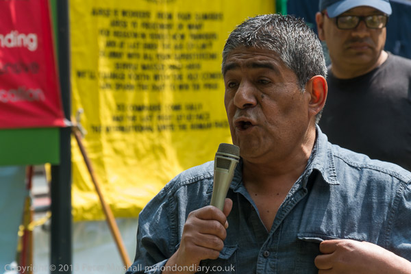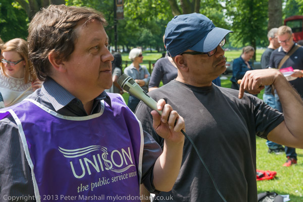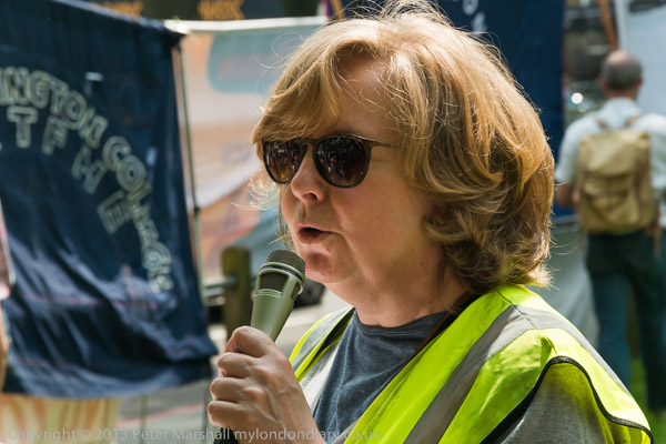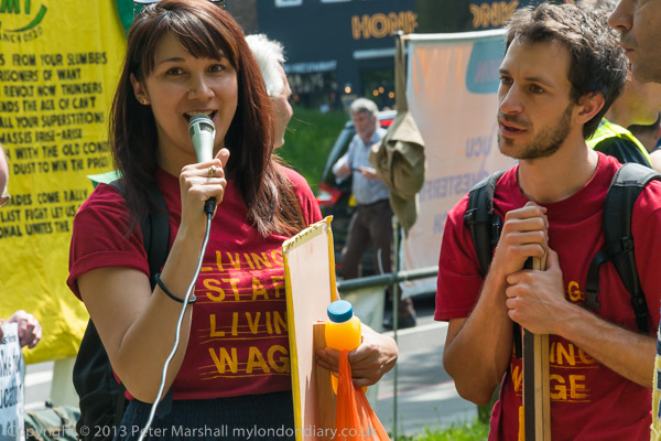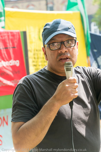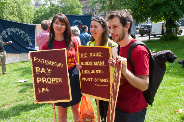 Ritzy cinema workers who are strking for a living wage address the crowd before the march