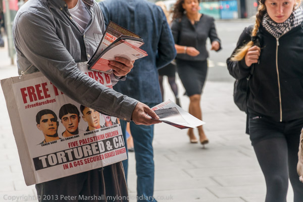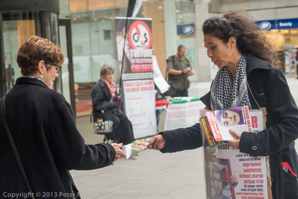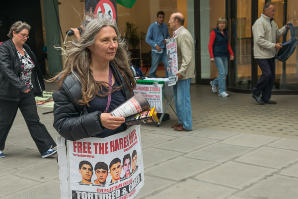 Giving out leaflets on Victoria St, outside the London HQ of G4S which helps to run the prisons in Israel