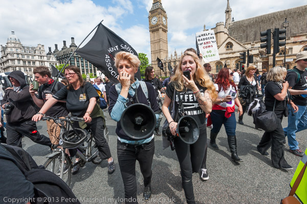 Among the suporters were Hunt Sabs with black banners