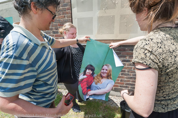 The Focus Mums have brought some large sheets which peple have written their thoughts and hopes about housing on