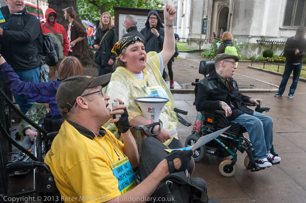 Many of the disabled protesters were outside the fence
