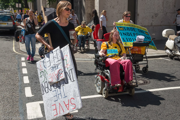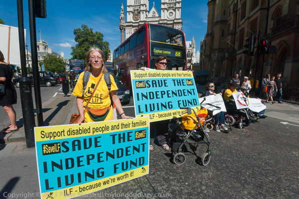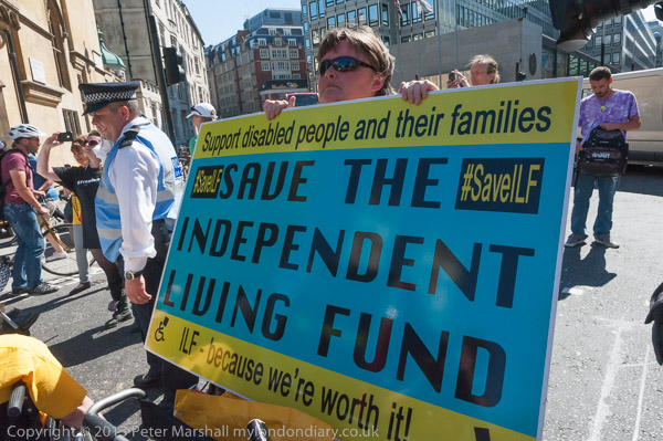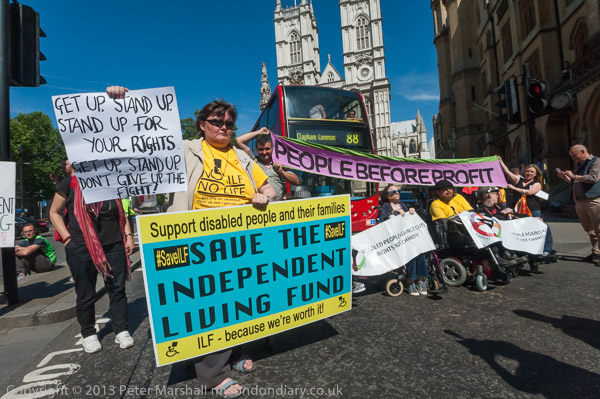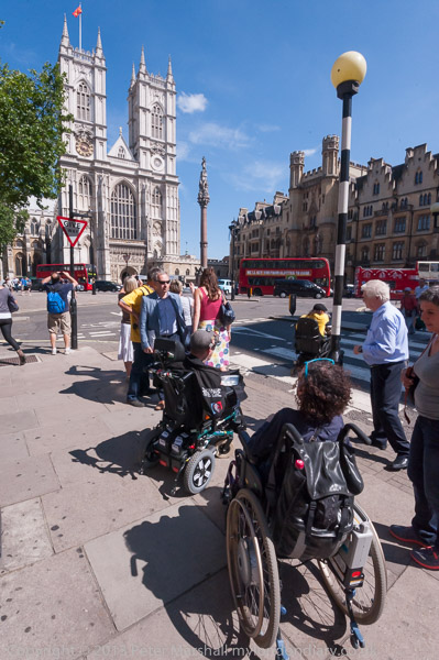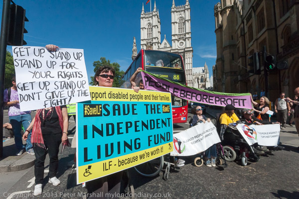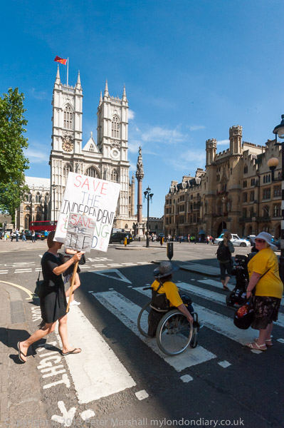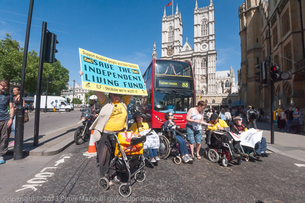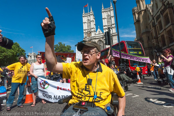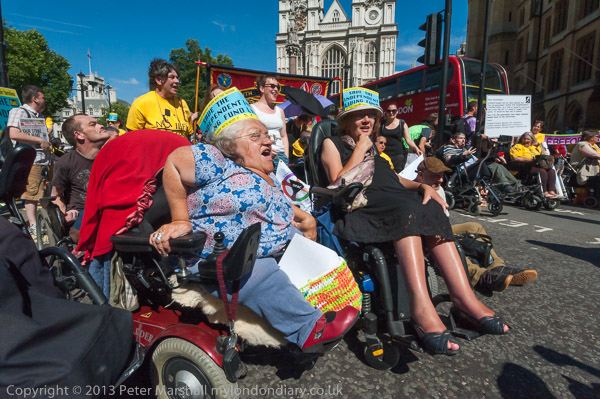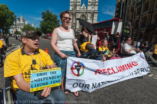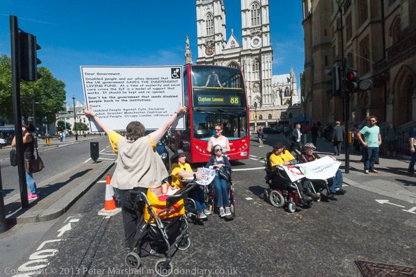 blocking both carriageways with their wheelchairs. Paula holds up the postcard and we can read the message