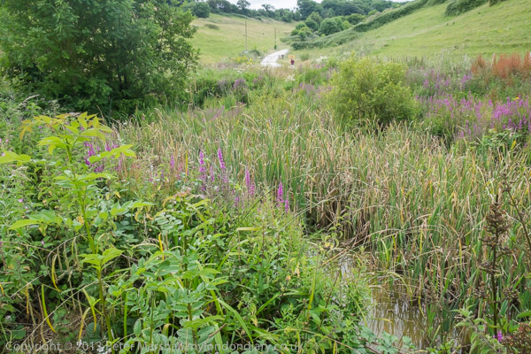 ![]() The line here was on an embankment ![]() With a bridge over a farm track ![]() The road went through between the farm buildings ![]() ![]() ![]() and soon we could see the viaduct. There is a footpath marked direct to it, but it seemed to be overgrown and part underwater ![]() So we continued along the road, taking a short cut across by a pond where the road goes on a loop ![]() Soon we got a better view of the Cannington Viaduct ![]() Quite an impressive structure |