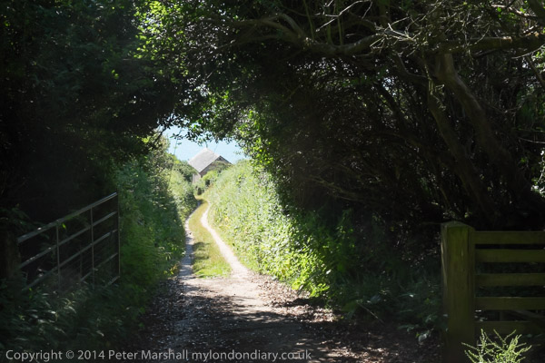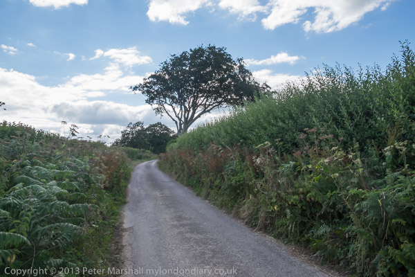 ![]() Combpyne Church and a small model of the church ![]() We took a footpath from Combpyne which led to the main road ![]() at Pinewood, another caravan site, then crossed it to go down ![]() a narrow land ![]() with some farm buildings ![]() ![]() before taking another green lane with tall hedges, and just the occasional gate where you could see anything ![]() ![]() ![]() The green lane ![]() Which brought us back to Downham ![]() and we walked back to Rousdon and had a rest |
