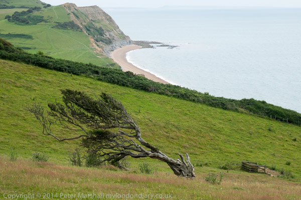 ![]() We lay exhausted on the top of Golden Cap and ate our sandwich lunch ![]() ![]() ![]() ![]() West from the top of Golden Cap ![]() East from the top of Golden Cap ![]() ![]() And then started to make our way down ![]() ![]() The trees grow blown by the wind ![]() ![]() ![]() ![]() And we went down to the sea at Seatown. Here too the coastal path has been diverted slightly due to landslip ![]() |
