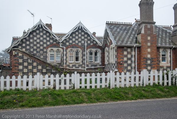 ![]() Axmouth Old Bridge is a scheduled ancient monument. Built in 1877 it is the oldest standing concrete bridge England ![]() Huts on the prom in Seaton ![]() ![]() ![]() It was cold and wet and we were bery disappointed to find the Chine cafe closed ![]() We climbed up through the mist ![]() The Check House, Grade II listed, now a care home was built in 1866 for Sir William Calverly Trevelyan and his wife ![]() Pauline, who entertained many famous Victorians here ![]() ![]() Again we had to follow a diversion because the cliff path was unsafe, but after a mile or so we were back on the cliffs, though the sea was invisible |