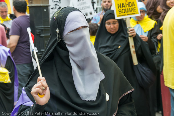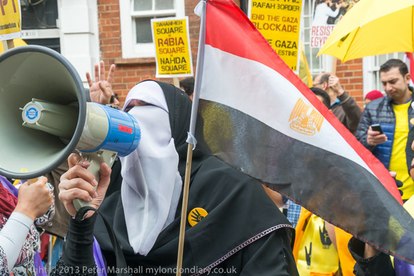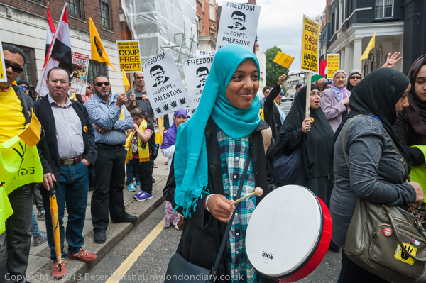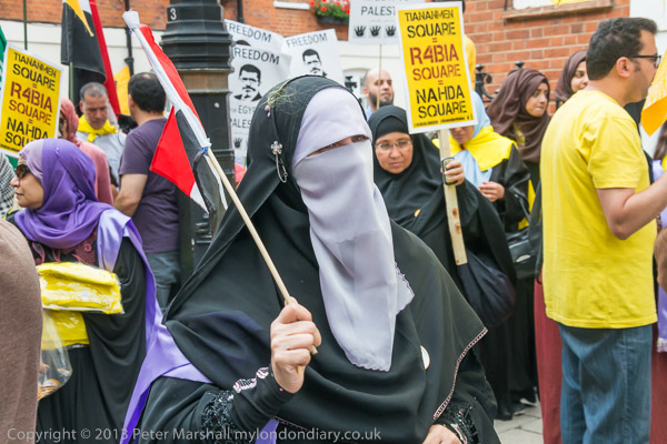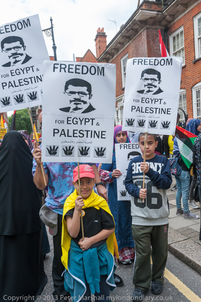 Most of the placards said 'Down with the Military Coup, Free Egypt'.