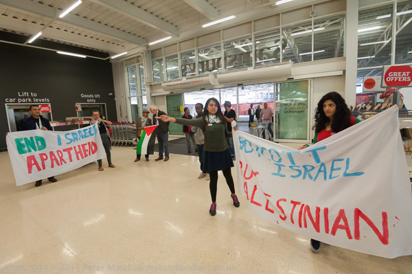 The protest by Tower Hamlets & Jenin Friendship Association was part of the international BDS campaign calling for a Boycott of Israeli goods, divestment from Israeli firms and sanctions against Israel until it ends the persecution of Palestinians and comes into line with international law and UN resolutions.