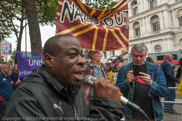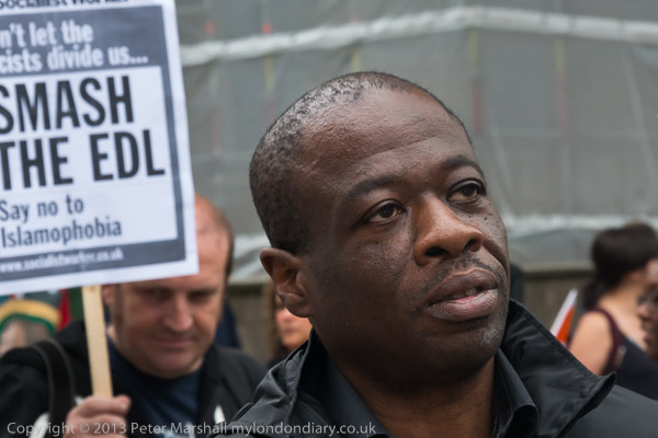 Back down at the counter-protest, Weyman Bennet gives a speech