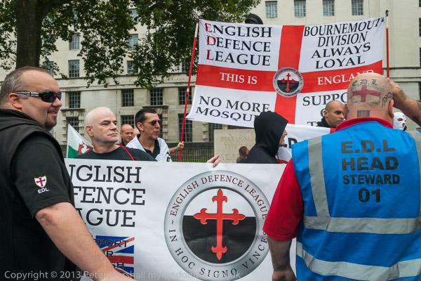 Most EDL members are careful to use 2 fingers when making raised arm salutes