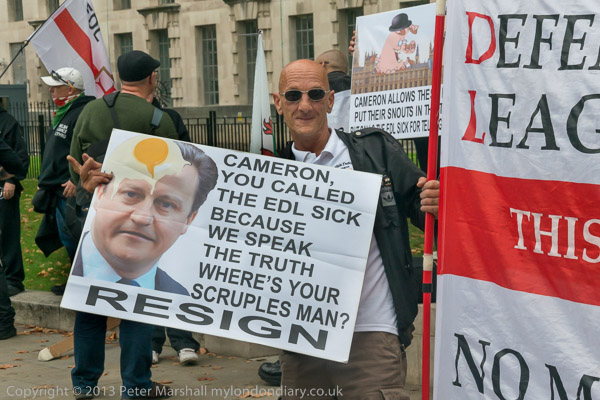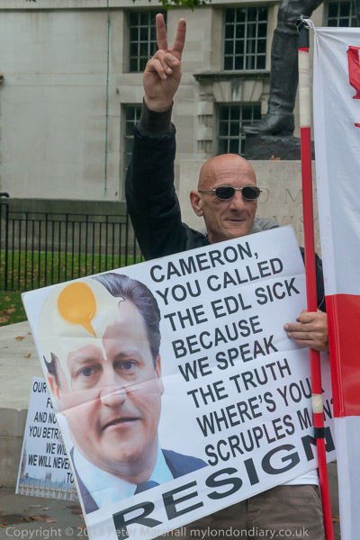 An EDL poster calls on Cameron to resign for calling the EDL sick
