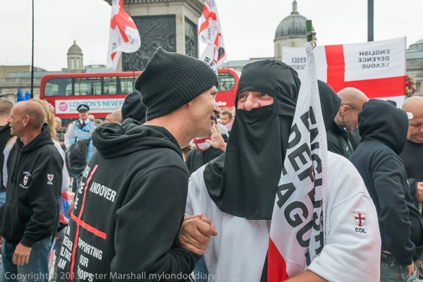 and then some go out to join others who are waiting to march down the few hundred yards from Trafalgar Square
