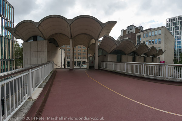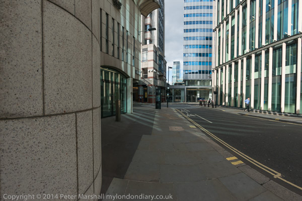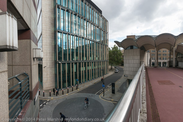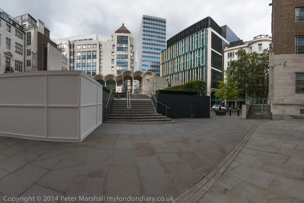 Bassetlaw Highwalk, Basinghall St and Basinghall Avenue. The Highwalk is blocked by gates under City Place House