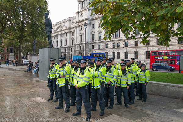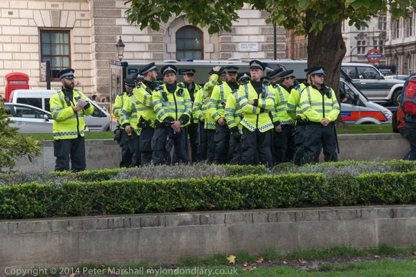 More police arriving and form up in small blocks around the square, waiting for the order to charge