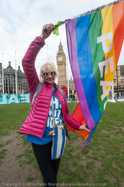 And a woman with rainbow peace flag poses for me in front of Big Ben