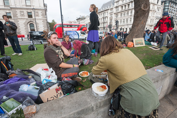 Poet and activist Martin Powell has brought some food for Danny, the man on the plinth