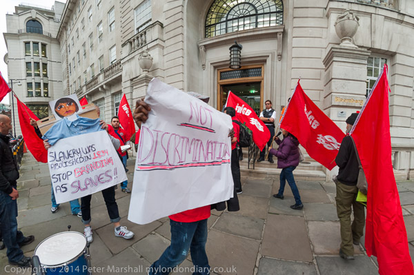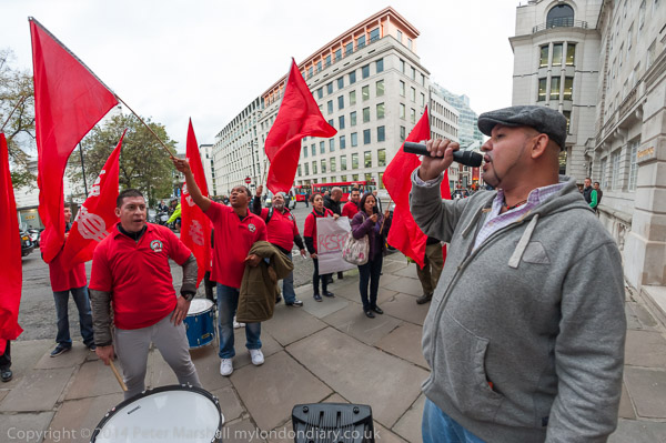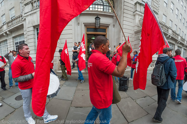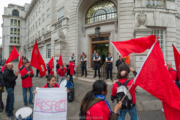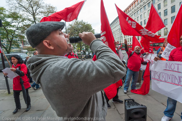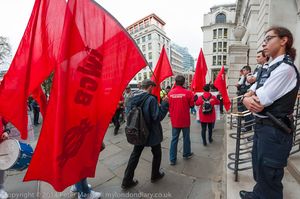 A police officer tries to get the IWGB to talk with managers, and thus avoid further protests