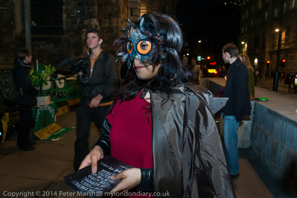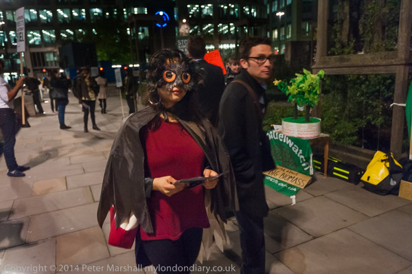 Some going into the bank for the party stopped to talk and argue with the protesters, and perhaps learnt something