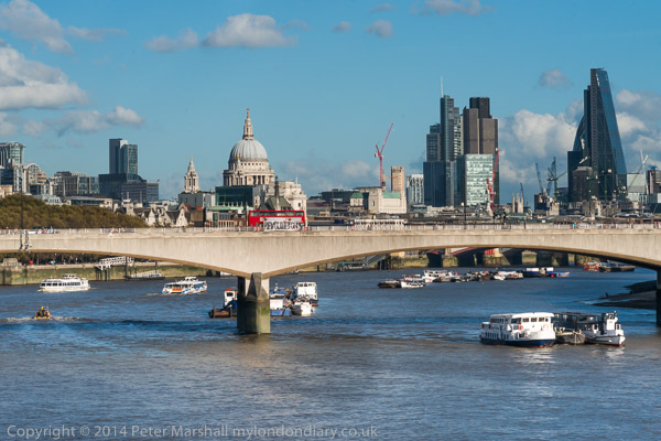 Waterloo Bridge and Trafalgar Square, London. Sat 1 Nov 2014