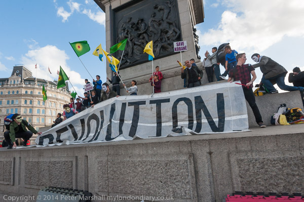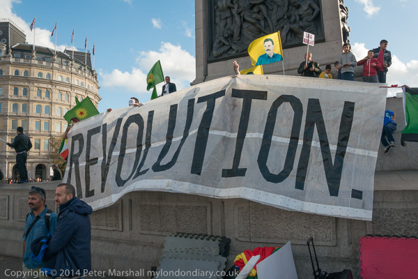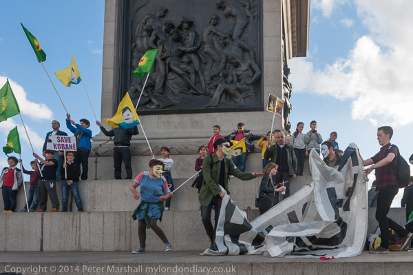Later they brought it to the Kobane solidarity protest in Trafalgar Square