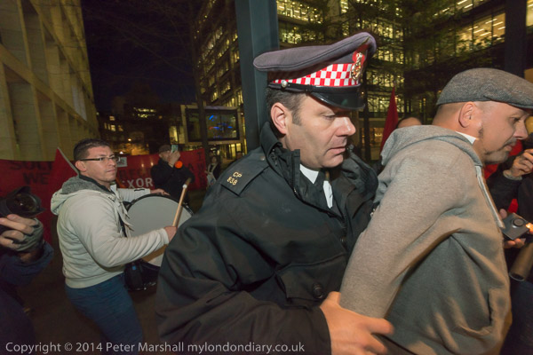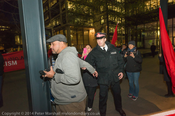 A City of London Police officer grabs the arm of Alberto Durango