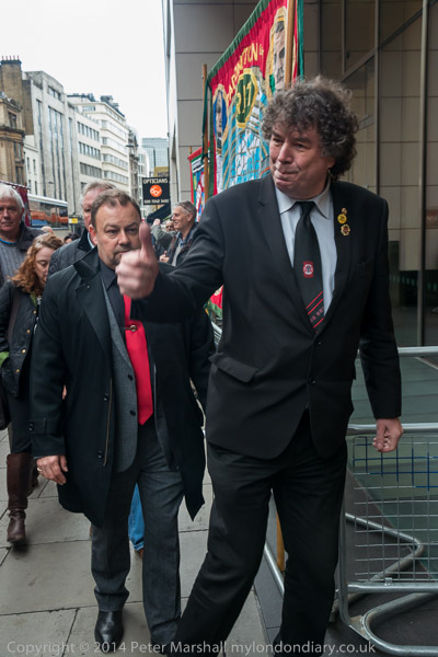 Bakers, Food and Allied Workers Union (BFAWU) leader Ian Hodson supports Orgreave Truth and Justice Campaign protest outside