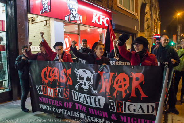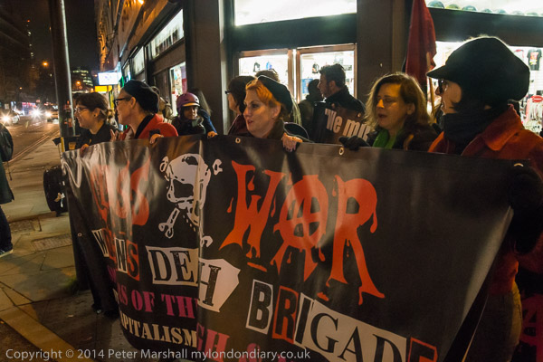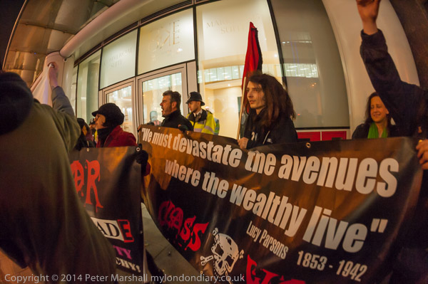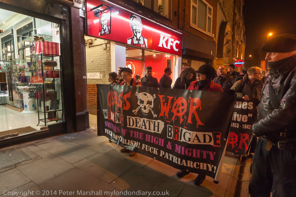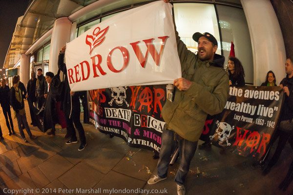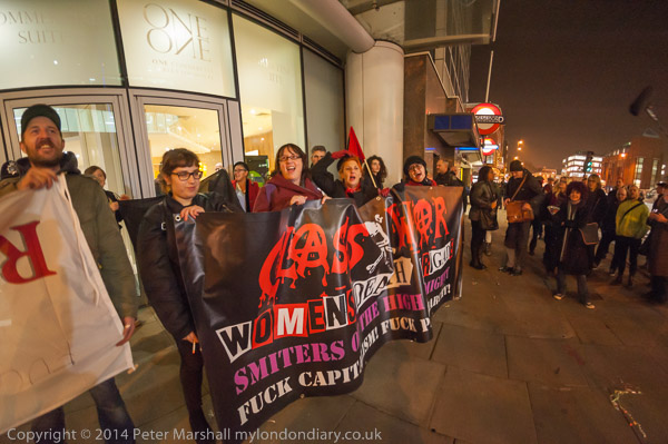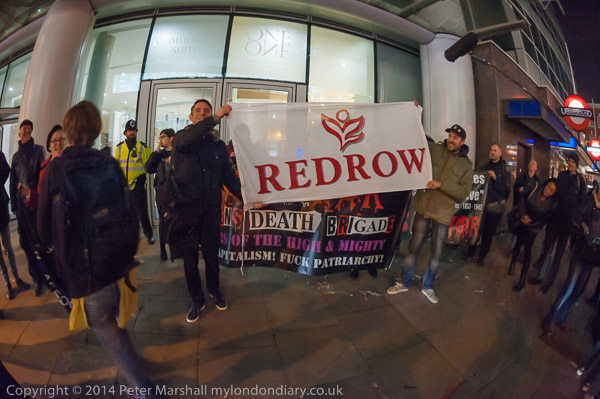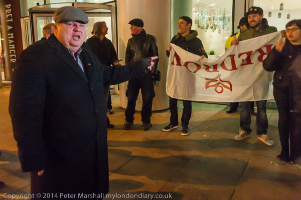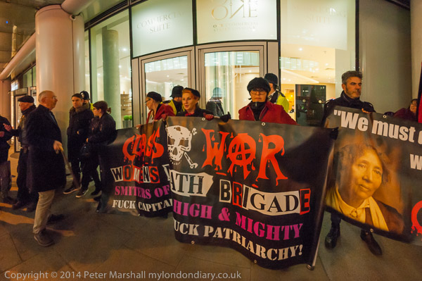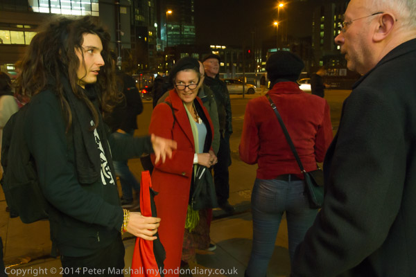 We went onto the street outside the alley leading to Freedom Books for the start of the protest