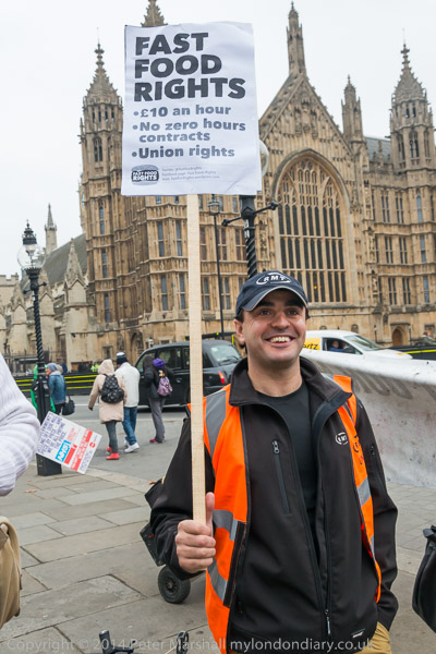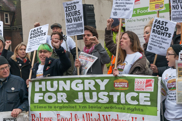 Sarah Woolley of the Bakers Unions (BFAWU) speaking at the Fast Food Rights rally